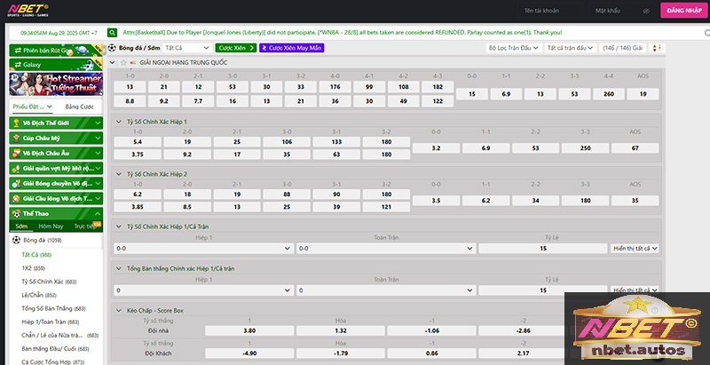 Bước 1: Chọn giải đấu mà bạn muốn dự đoán kèo cược. Ưu tiên lựa chọn các giải đấu lớn, có nhiều thông tin giải đấu.